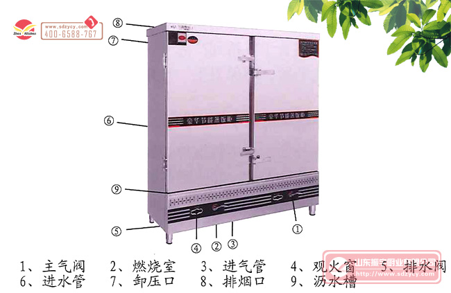 3、本蒸飯車上裝有重力式卸壓閥,它是多余蒸汽和廢氣泄放通道,切記不可隨意加重、壓住或堵塞,應排泄自如,也不主張采用外接管道的辦法往室內外接管道排放,須知外接管道可能接法不規(guī)范而引起冷凝水堵塞或冬天室外排氣口冰堵,造成意外事故。